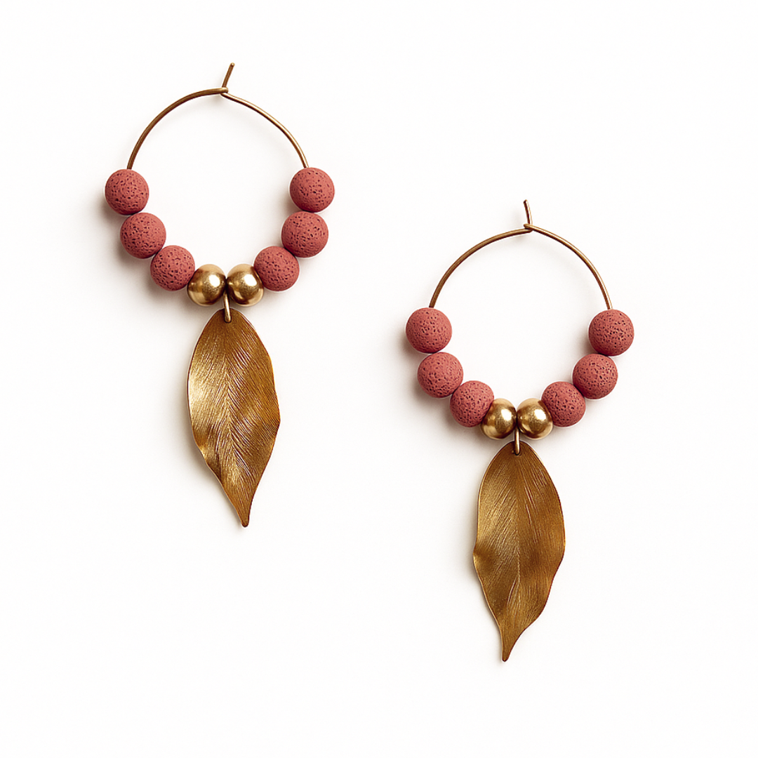 - Design: Brincos com pedras vulcânicas e folha de ouro