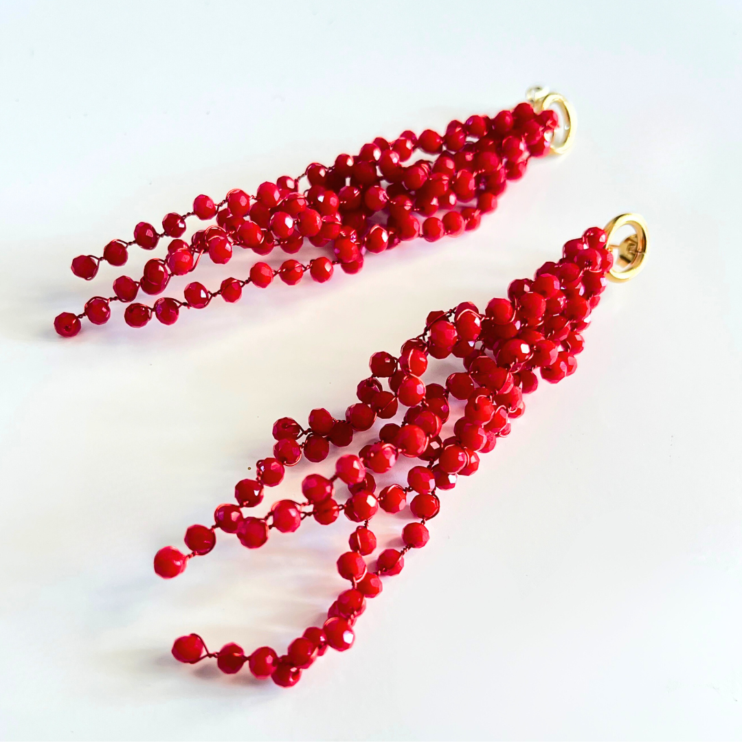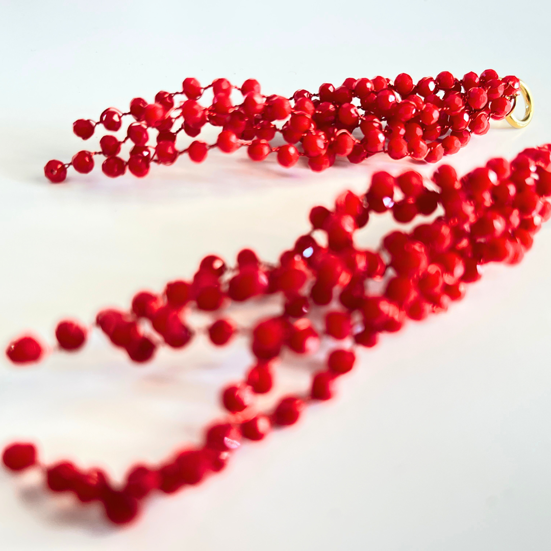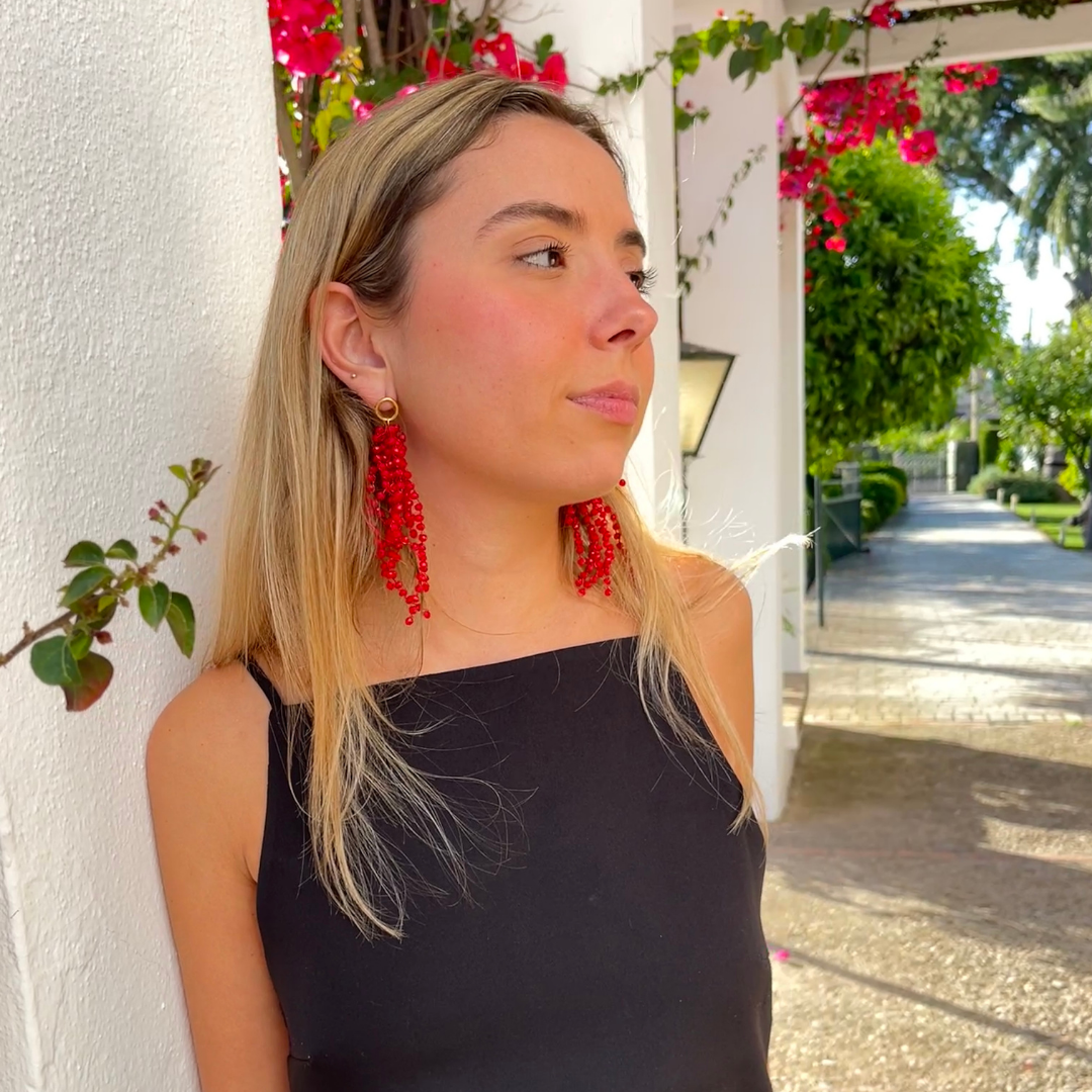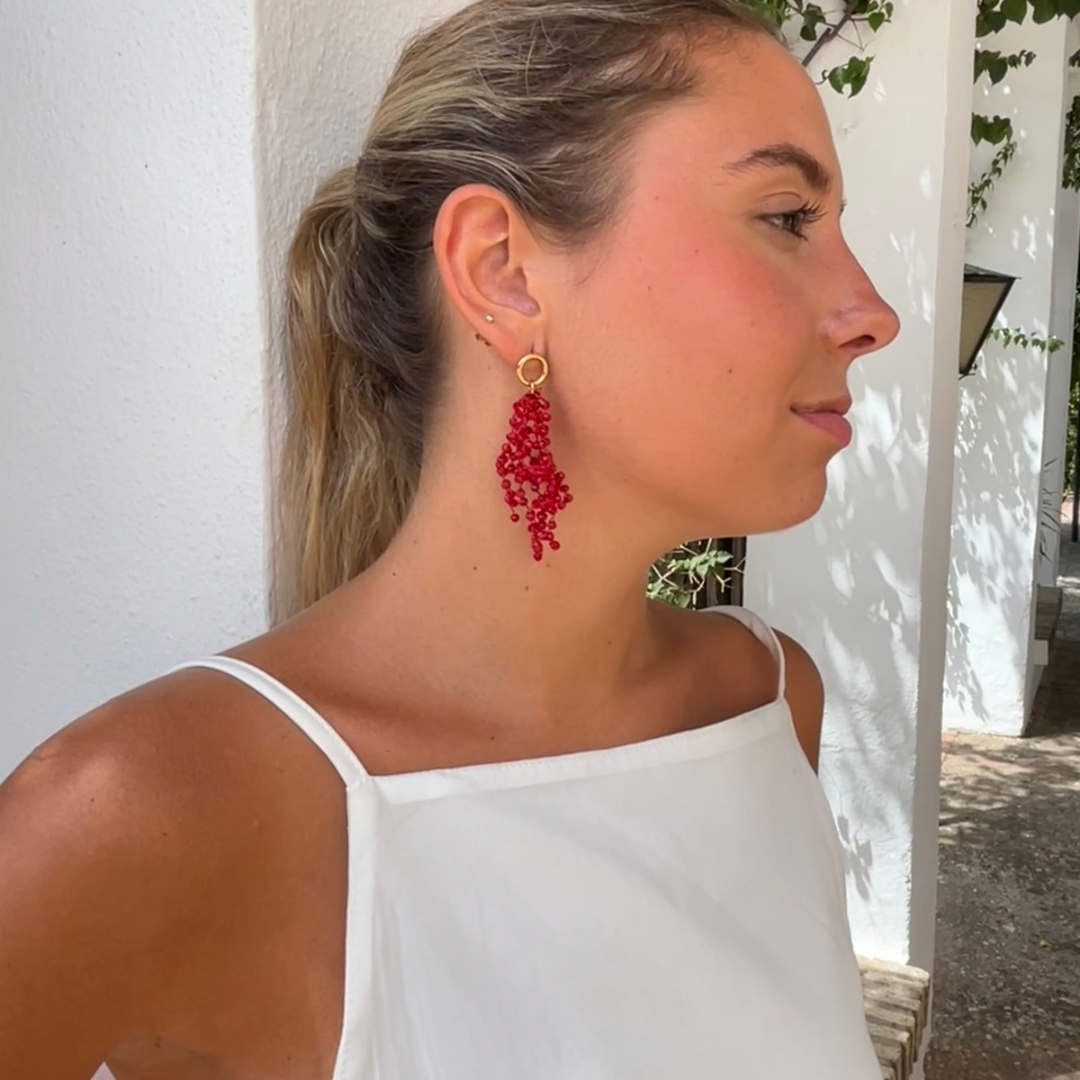 Os brincos Celine são a definição de elegância e movimento. O seu design em cascata com contas brilhantes acrescenta um toque sofisticado e individual. Disponíveis em vermelho, bordeaux e buganvília, estes brincos compridos são ideais para casamentos, festas e eventos especiais. Combine-os com um vestido simples para os destacar ou adicione-os a um look mais ousado para um impacto dramático.