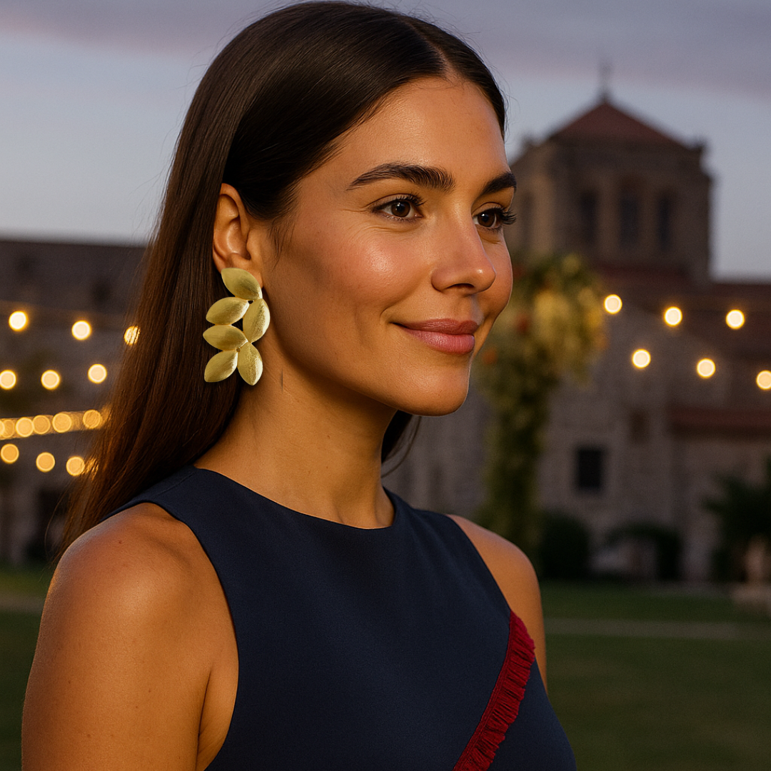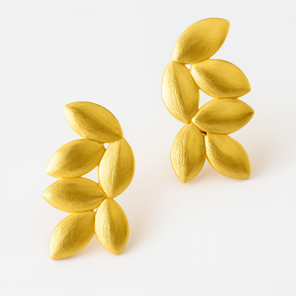 Os brincos Margot são dourados, grandes e cheios de personalidade. O seu design escultural inspirado em folhas torna-os o acessório perfeito para casamentos, looks sofisticados ou convidados com personalidade .